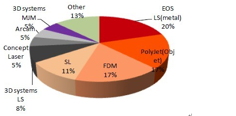 圖1:現(xiàn)階段不同3D打印設(shè)備使用比例